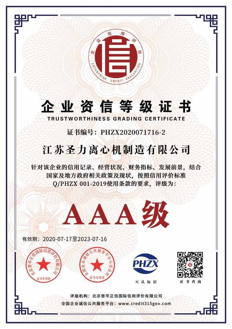 江蘇圣力離心機制造有限公司是國內(nèi)分離機械行業(yè)中主要的離心機生產(chǎn)企業(yè),對離心機的研究、設(shè)計、制造有多年的歷史,擁有齊全的設(shè)備、完善的檢測手段。公司已通過IS09000國際質(zhì)量體系認(rèn)證、ISO14001環(huán)境管理體系認(rèn)證、ISO45001:2018職業(yè)健康安全管理體系認(rèn)證和CE認(rèn)證,是江蘇省高新技術(shù)企業(yè),曾榮獲國家和地方多項榮譽稱號。